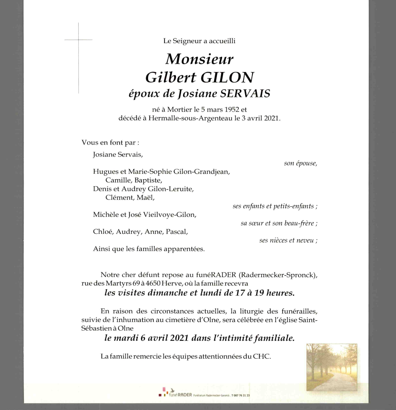Fallecido en Oupeye (4680) el sábado, 3 de abril de 2021 a la edad de 69 años