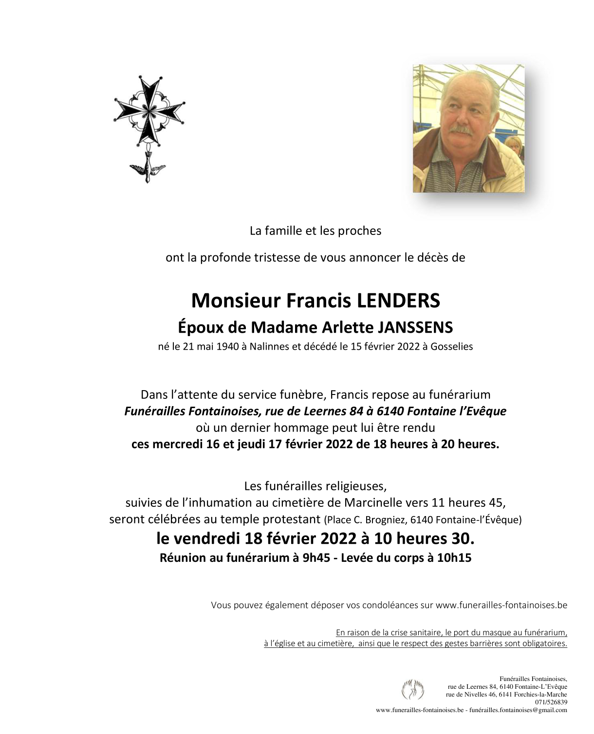 Décédé à Gosselies (6041) le mardi 15 février 2022 à l'âge de 81 ans