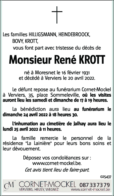 Fallecido en Verviers (4800) el miércoles, 20 de abril de 2022 a la edad de 91 años