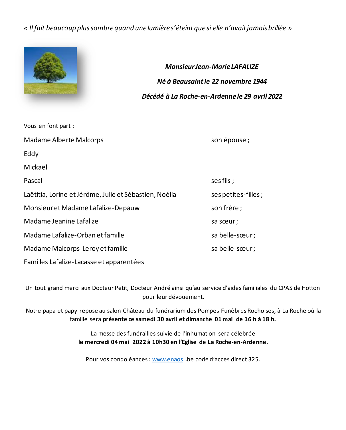Died in La Roche-en-Ardenne (6980) on 29 April 2022 at the age of 77 years