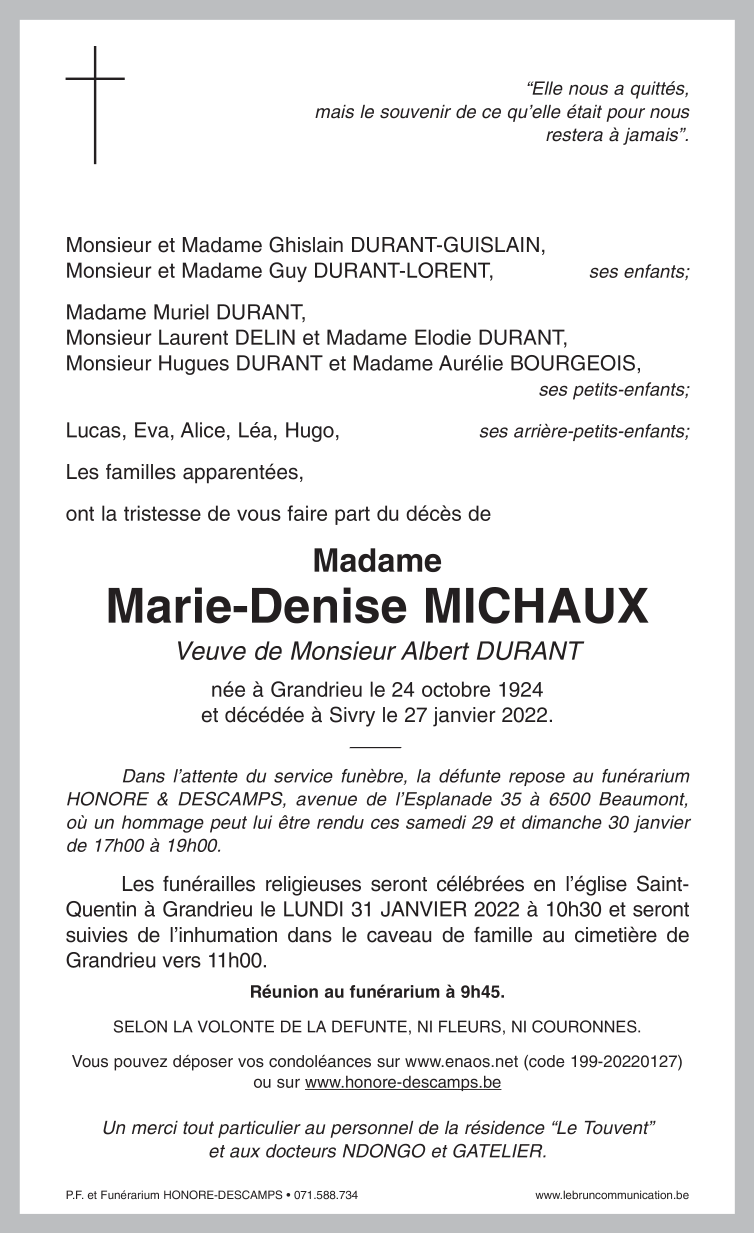 Madame Marie-Denise Michaux