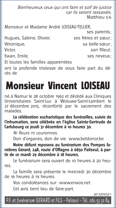 Overleden te Bruxelles (Woluwe-Saint-Lambert) (1200) op maandag 28 december 2015 op 53-jarige leeftijd
