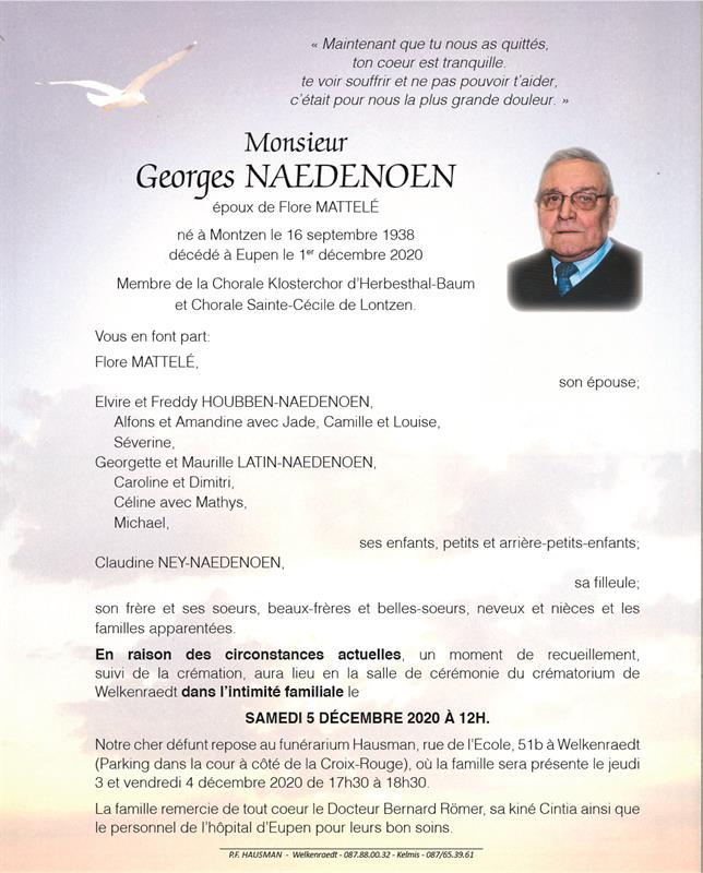 Décédé à Eupen (4700) le mardi 1 décembre 2020 à l'âge de 82 ans