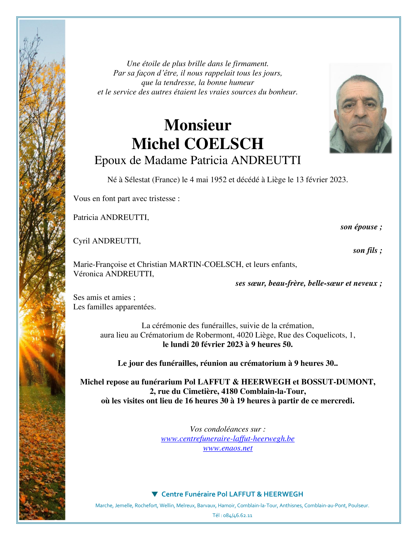 Décédé à Liège (4000) le lundi 13 février 2023 à l'âge de 70 ans