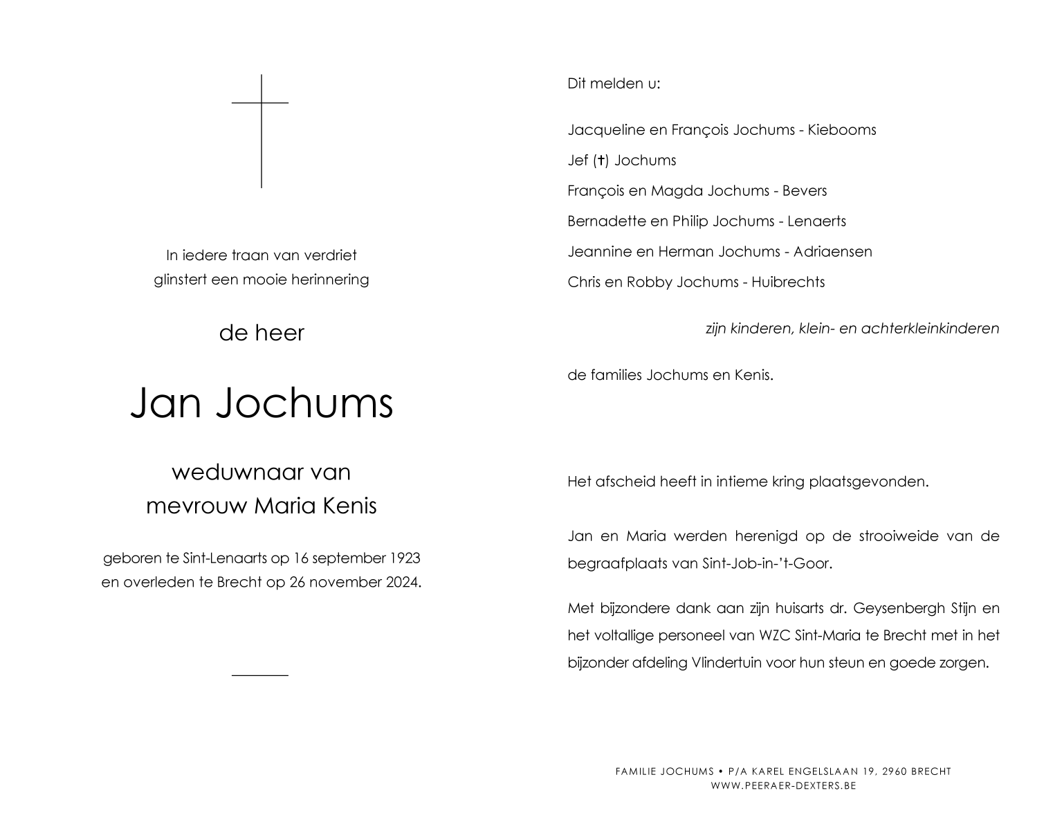 Décédé à Brecht (2960) le mardi 26 novembre 2024 à l'âge de 101 ans