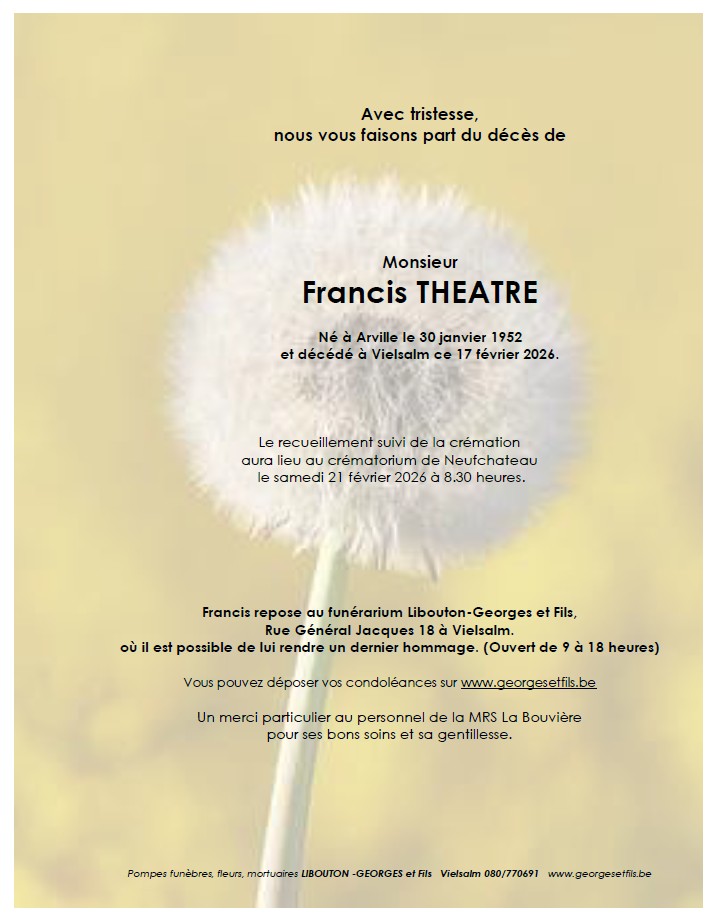Overleden te Vielsalm (6690) op dinsdag 17 februari 2026 op 74-jarige leeftijd