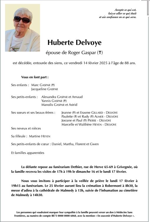 Madame Huberte DELVOYE