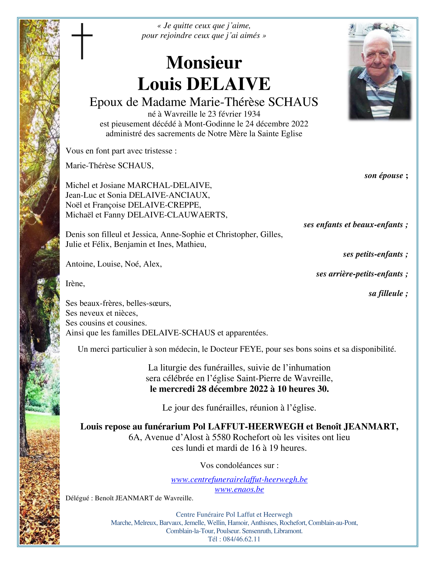 Né à Wavreille (5580) le vendredi 23 février 1934