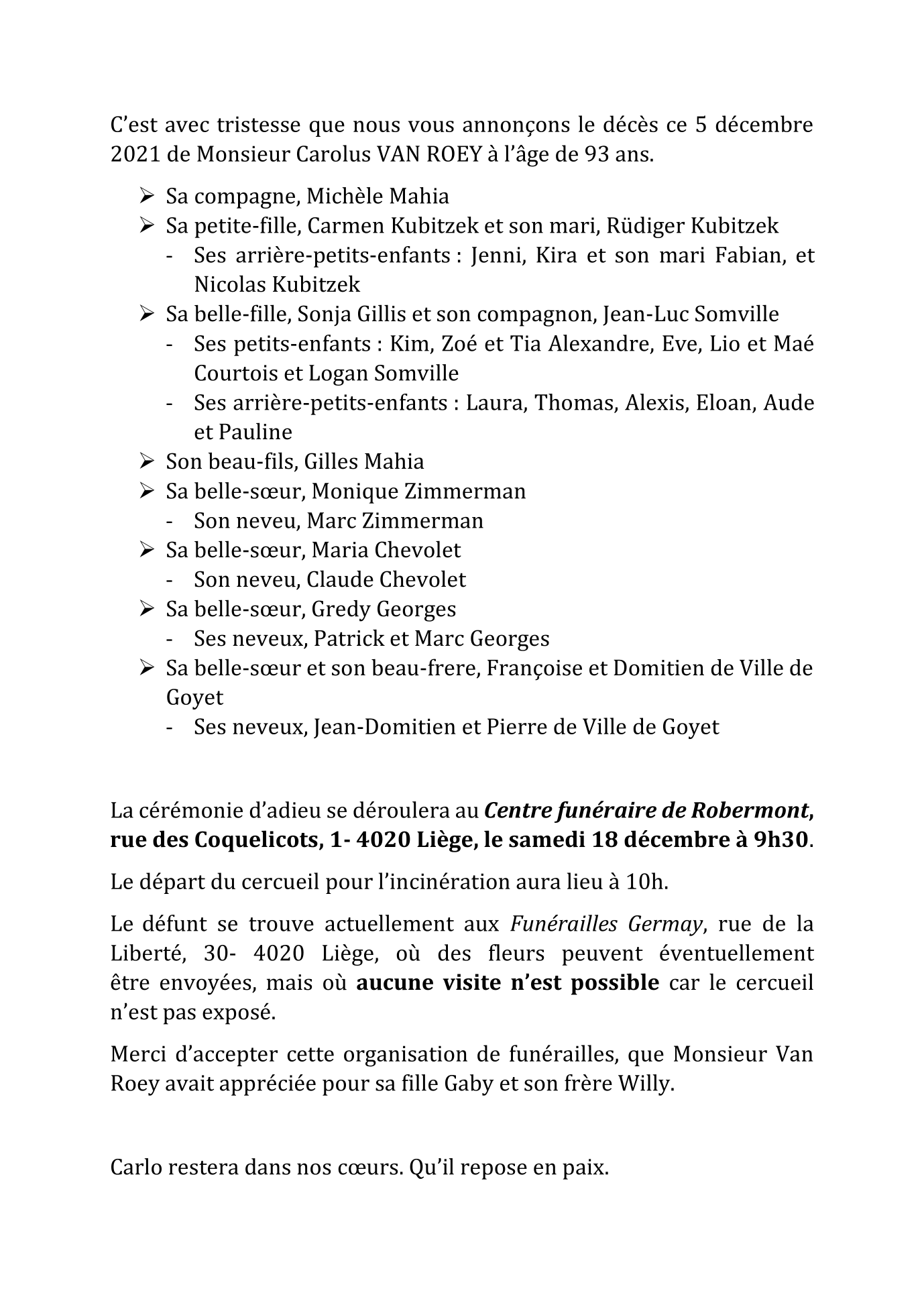 Fallecido en Hermalle-sous-Argenteau (4681) el domingo, 5 de diciembre de 2021 a la edad de 93 años