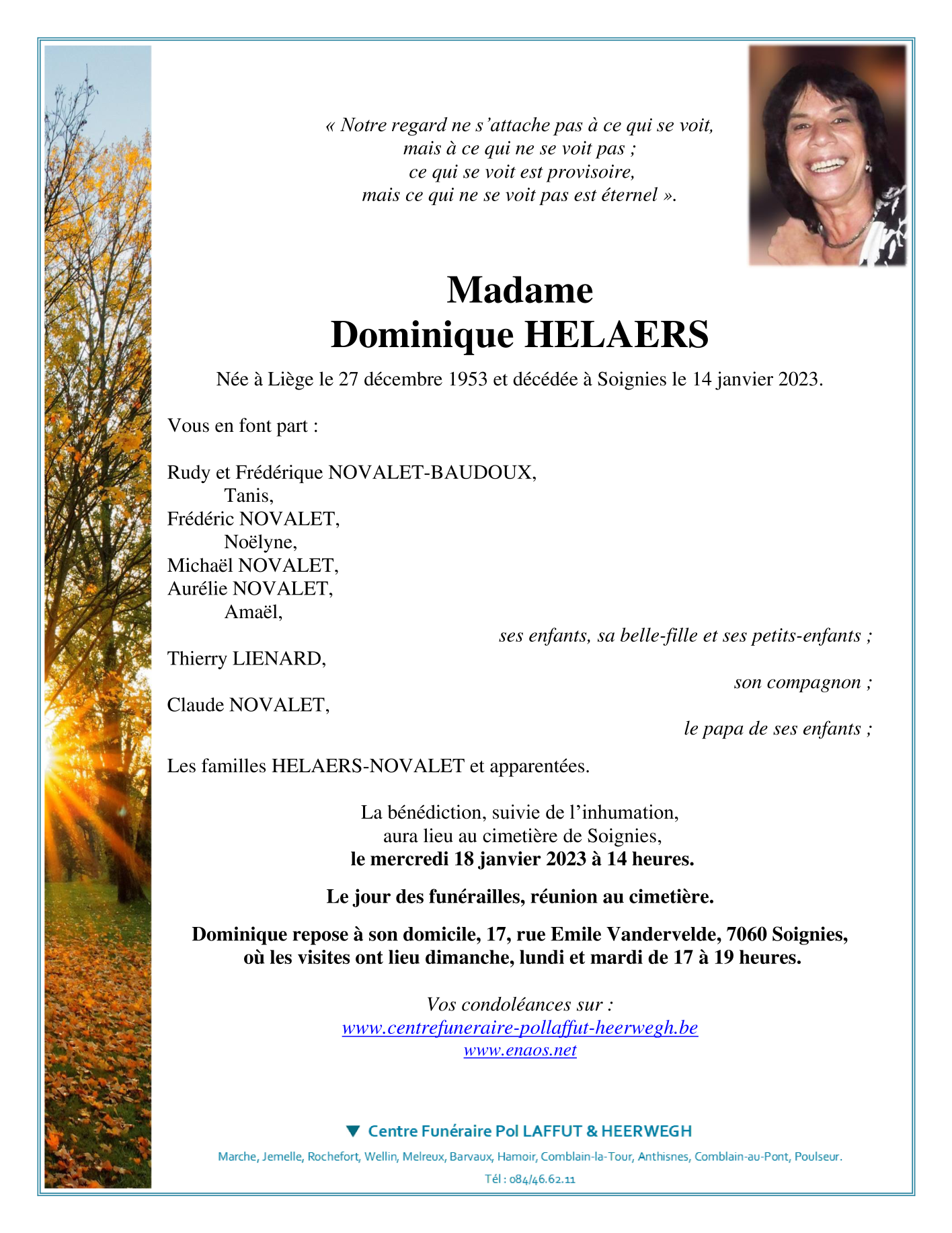 Overleden te Soignies (7060) op zaterdag 14 januari 2023 op 69-jarige leeftijd