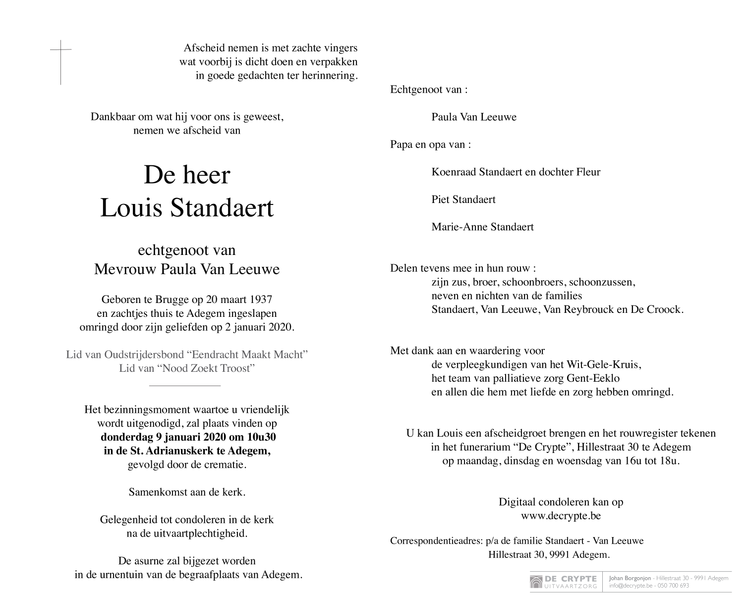 Fallecido en Adegem (9991) el jueves, 2 de enero de 2020 a la edad de 82 años