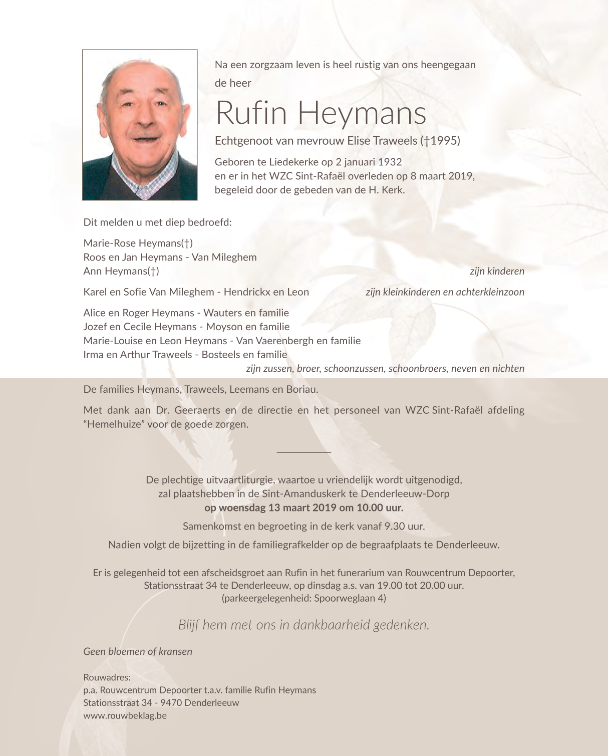 Décédé à Liedekerke (1770) le vendredi 8 mars 2019 à l'âge de 87 ans