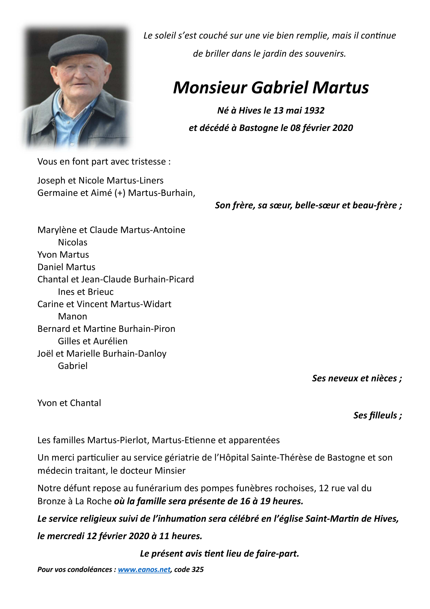 Décédé à Bastogne (6600) le samedi 8 février 2020 à l'âge de 87 ans