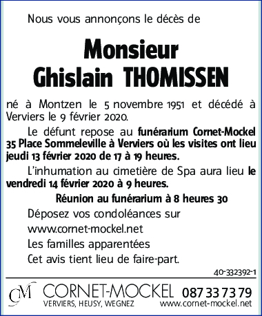 Overleden te Heusy (4802) op zondag 9 februari 2020 op 68-jarige leeftijd