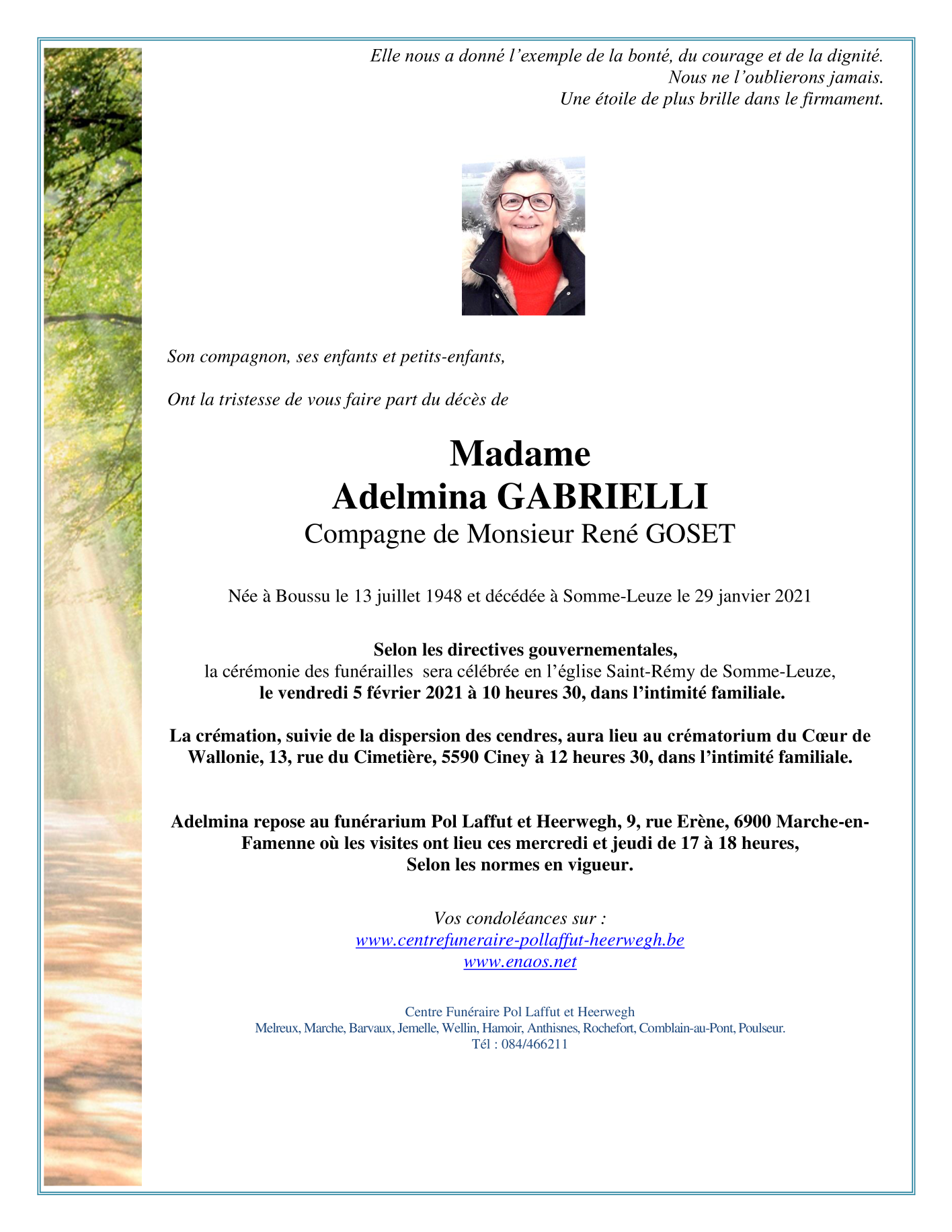 Overleden te Somme-Leuze (5377) op vrijdag 29 januari 2021 op 72-jarige leeftijd