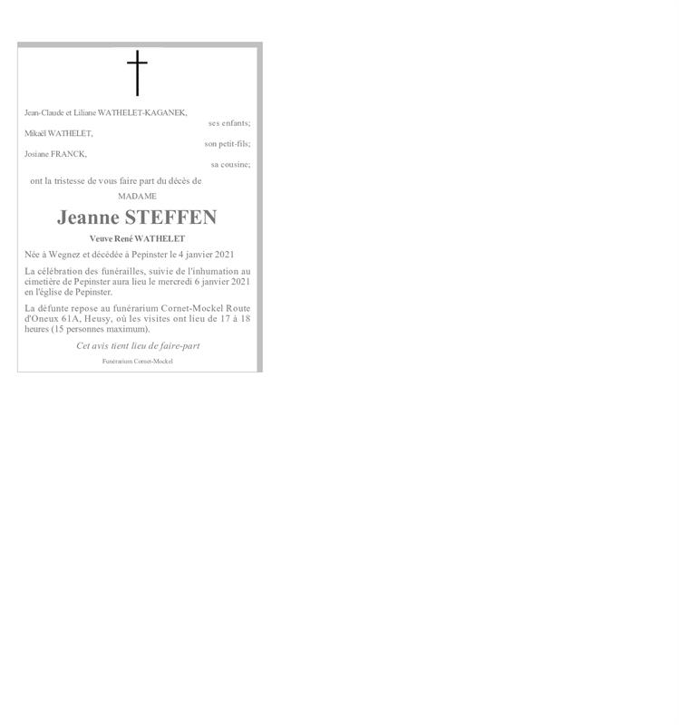 Madame Jeanne STEFFEN