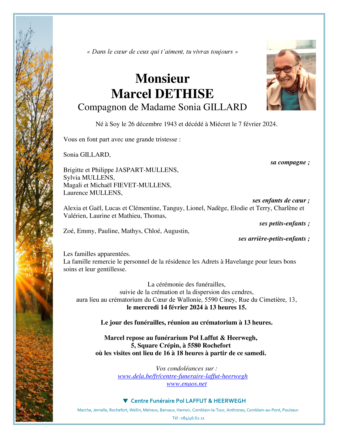 Died in Miécret (5376) on 07 February 2024 at the age of 80 years