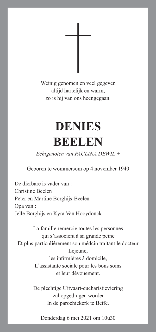 Died in Beffe (6987) on 29 April 2021 at the age of 81 years