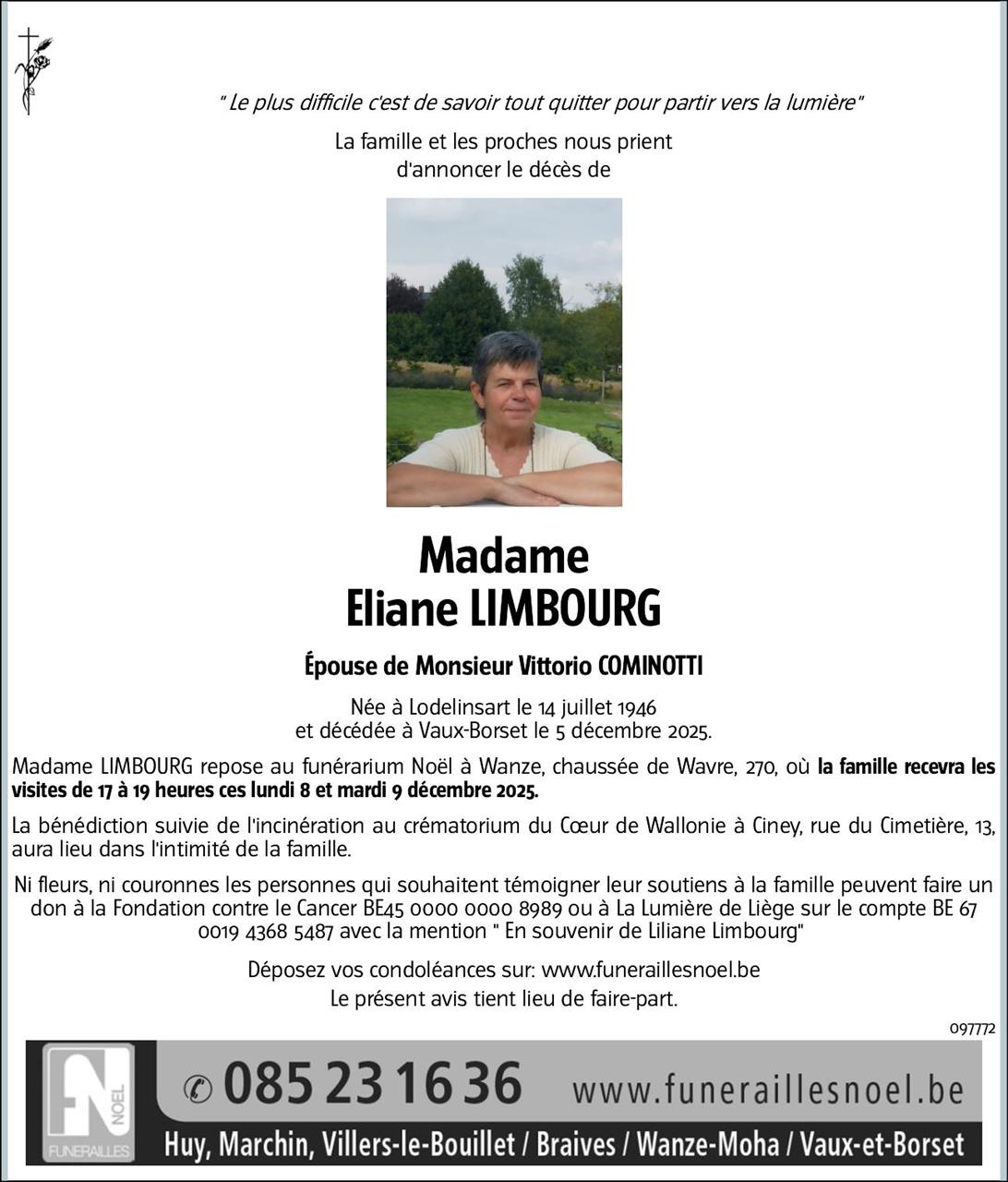 Décédée à Vaux-et-Borset (4530) le vendredi 5 décembre 2025 à l'âge de 79 ans