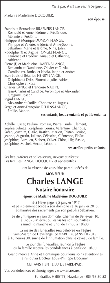 Monsieur Charles LANGE Notaire honoraire