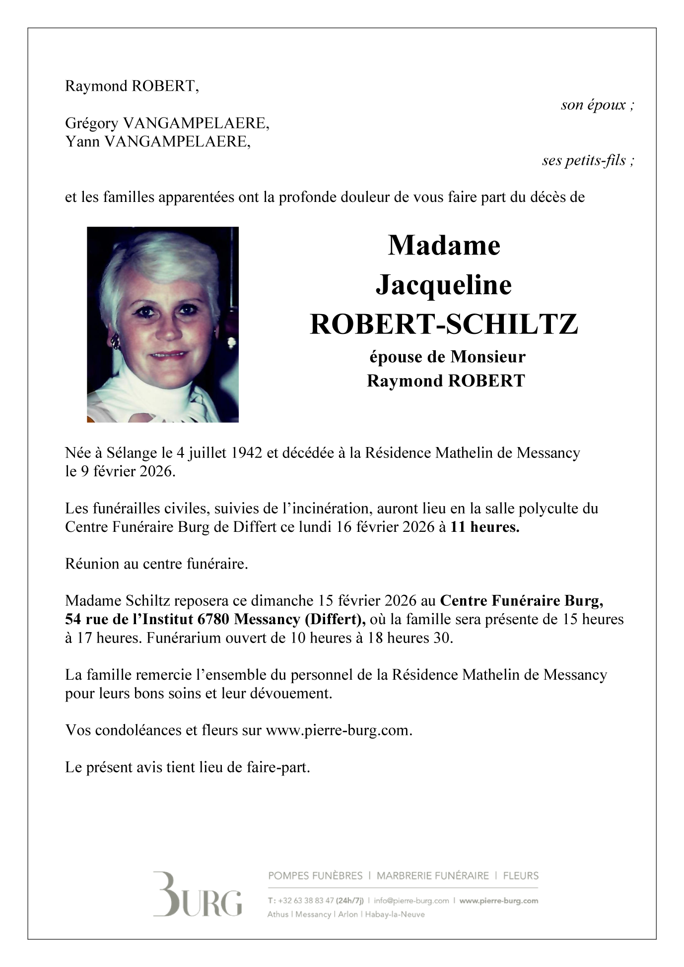 Overleden te Messancy (6780) op maandag 9 februari 2026 op 83-jarige leeftijd
