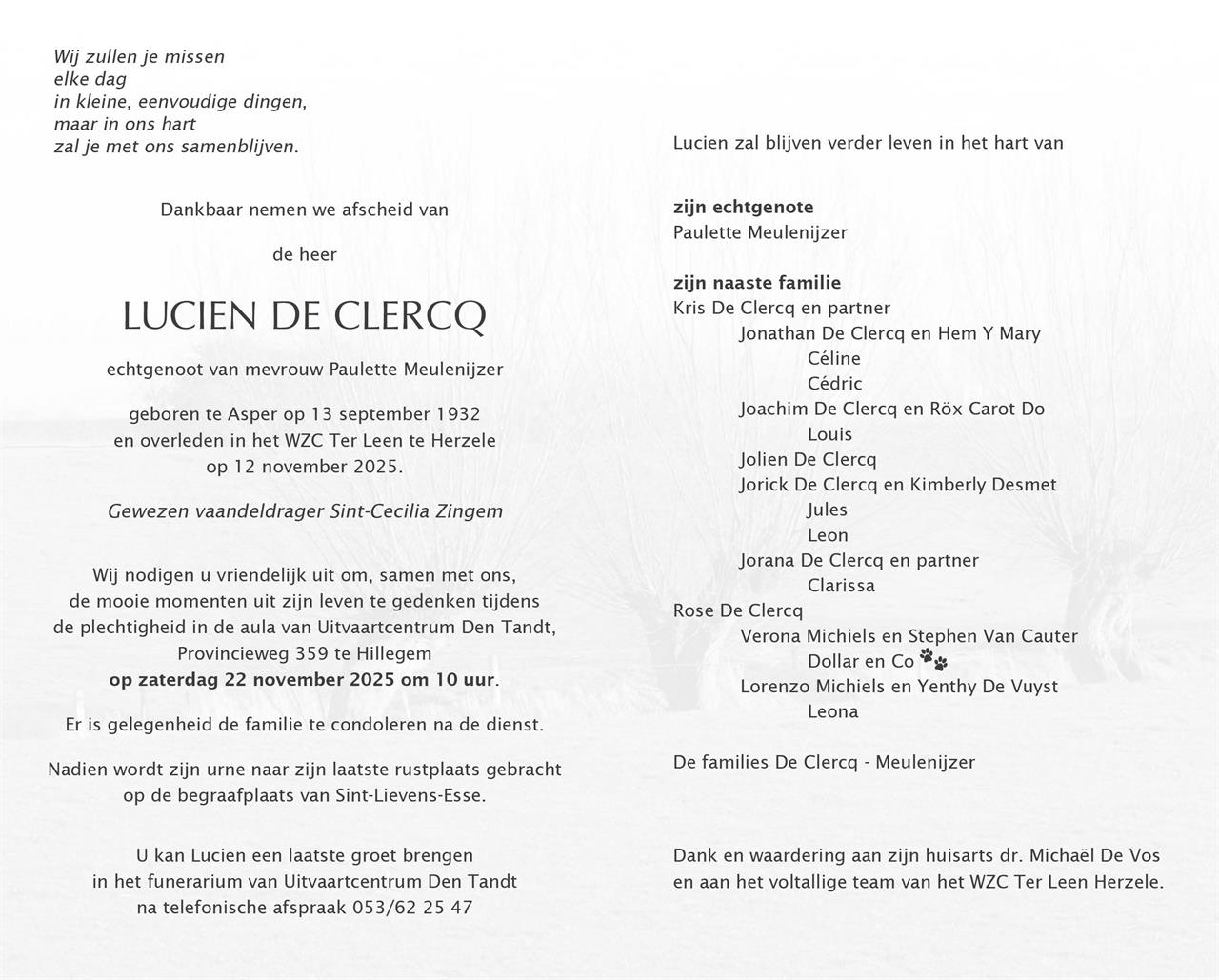 Overleden te Herzele (9550) op woensdag 12 november 2025 op 93-jarige leeftijd