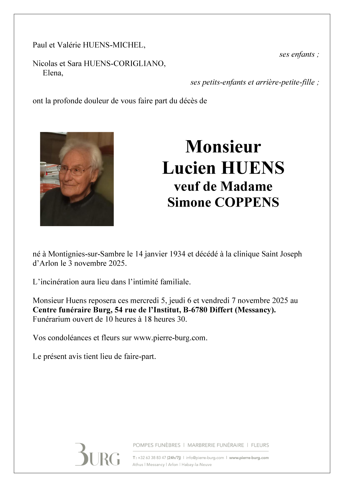Décédé à Arlon (6700) le lundi 3 novembre 2025 à l'âge de 91 ans
