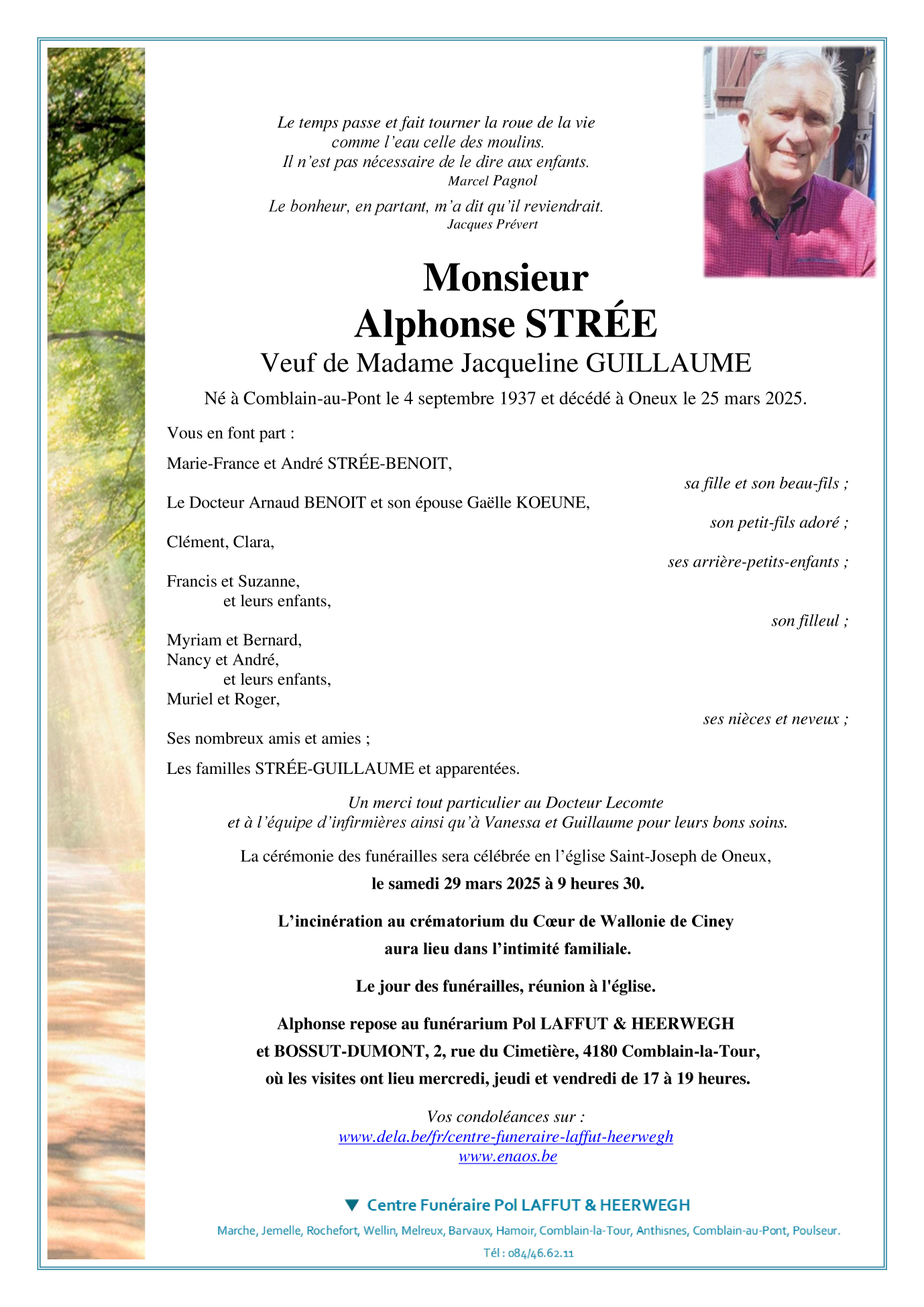 Décédé à Oneux (4170) le mardi 25 mars 2025 à l'âge de 87 ans