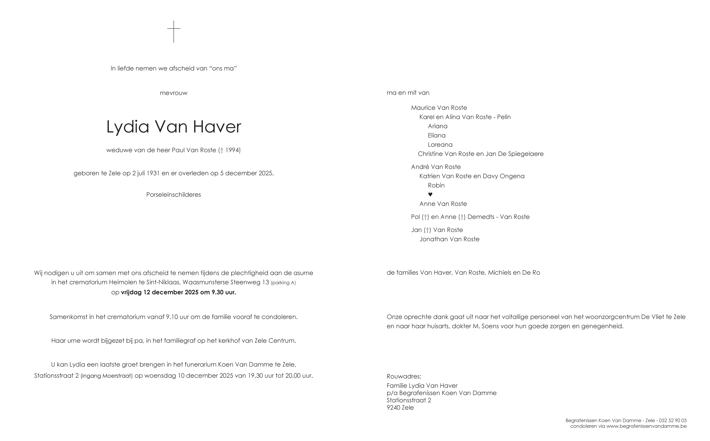 Overleden te Zele (9240) op vrijdag 5 december 2025 op 94-jarige leeftijd
