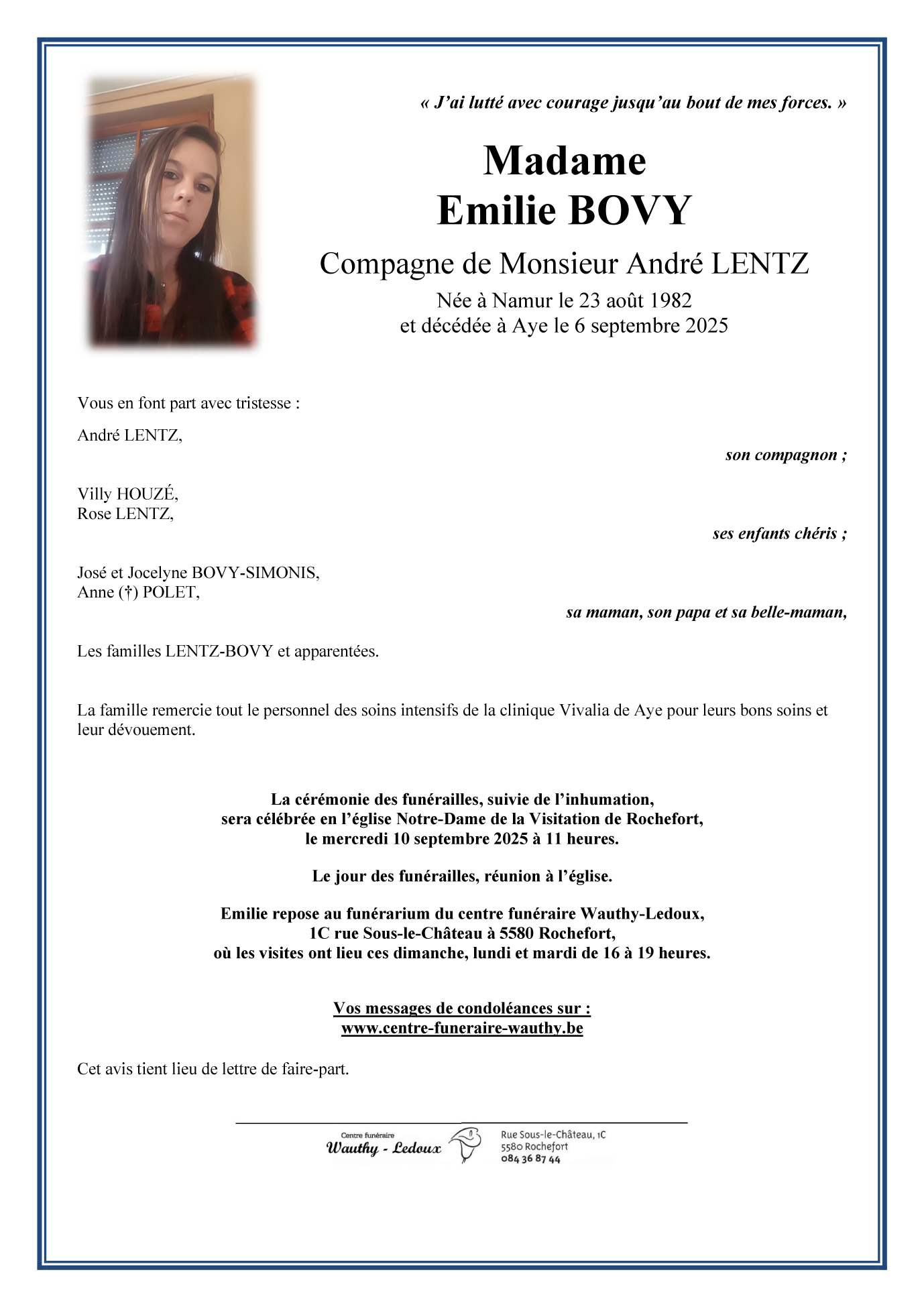 Madame Emilie BOVY