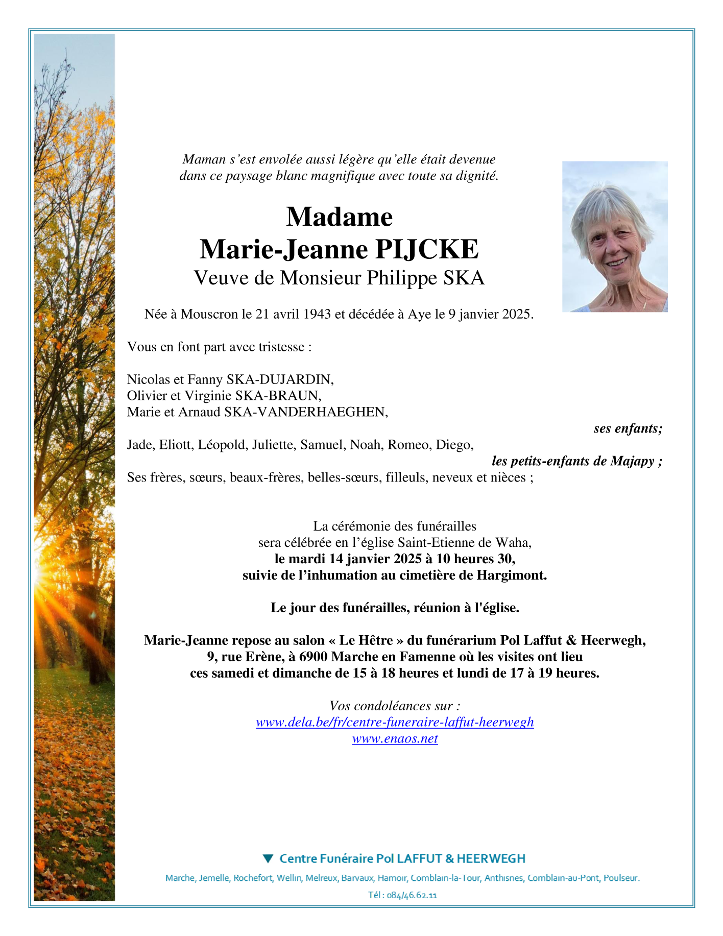 Overleden te Aye (6900) op donderdag 9 januari 2025 op 81-jarige leeftijd