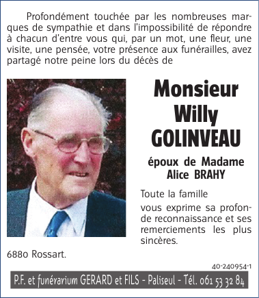 Décédé à Libramont (6800) le jeudi 21 avril 2016 à l'âge de 82 ans