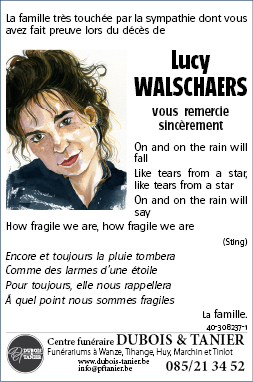 Décédée à Huy (4500) le samedi 22 décembre 2018 à l'âge de 54 ans