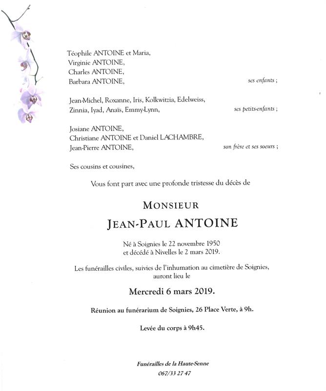Décédé à Nivelles (1400) le samedi 2 mars 2019 à l'âge de 68 ans
