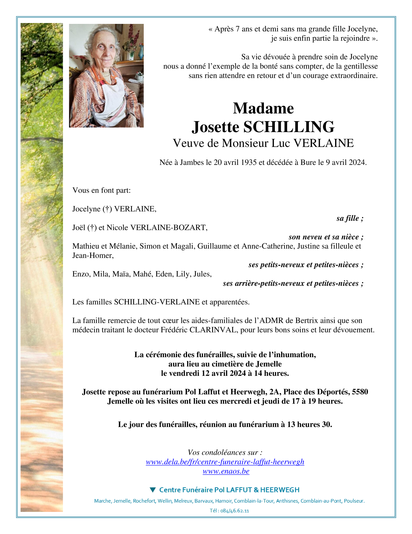 Veuve de Monsieur Luc VERLAINE