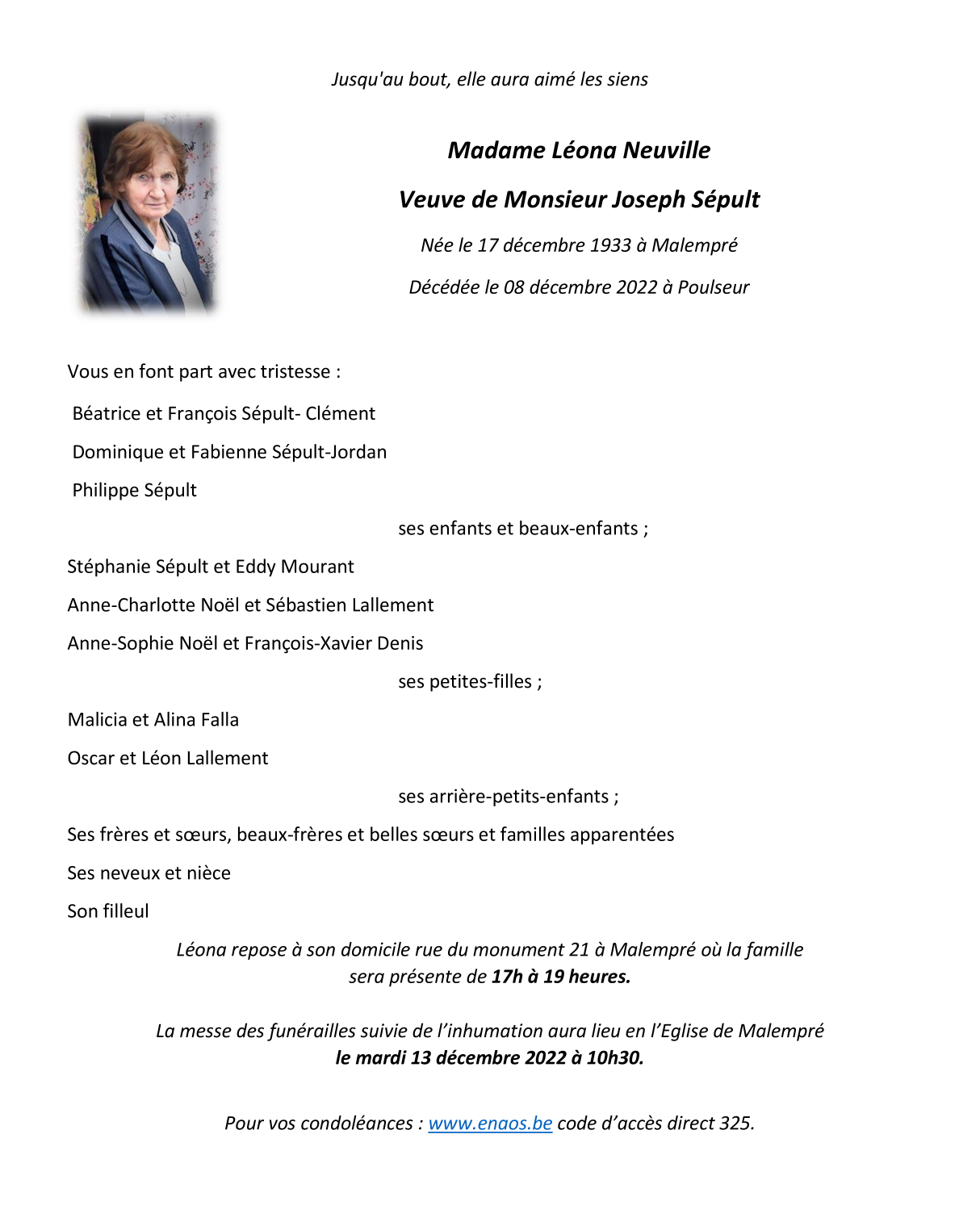 Died in Poulseur (4171) on 08 December 2022 at the age of 88 years