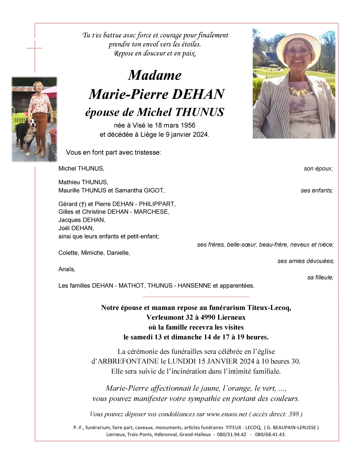 Overleden te Liège (4000) op dinsdag 9 januari 2024 op 67-jarige leeftijd