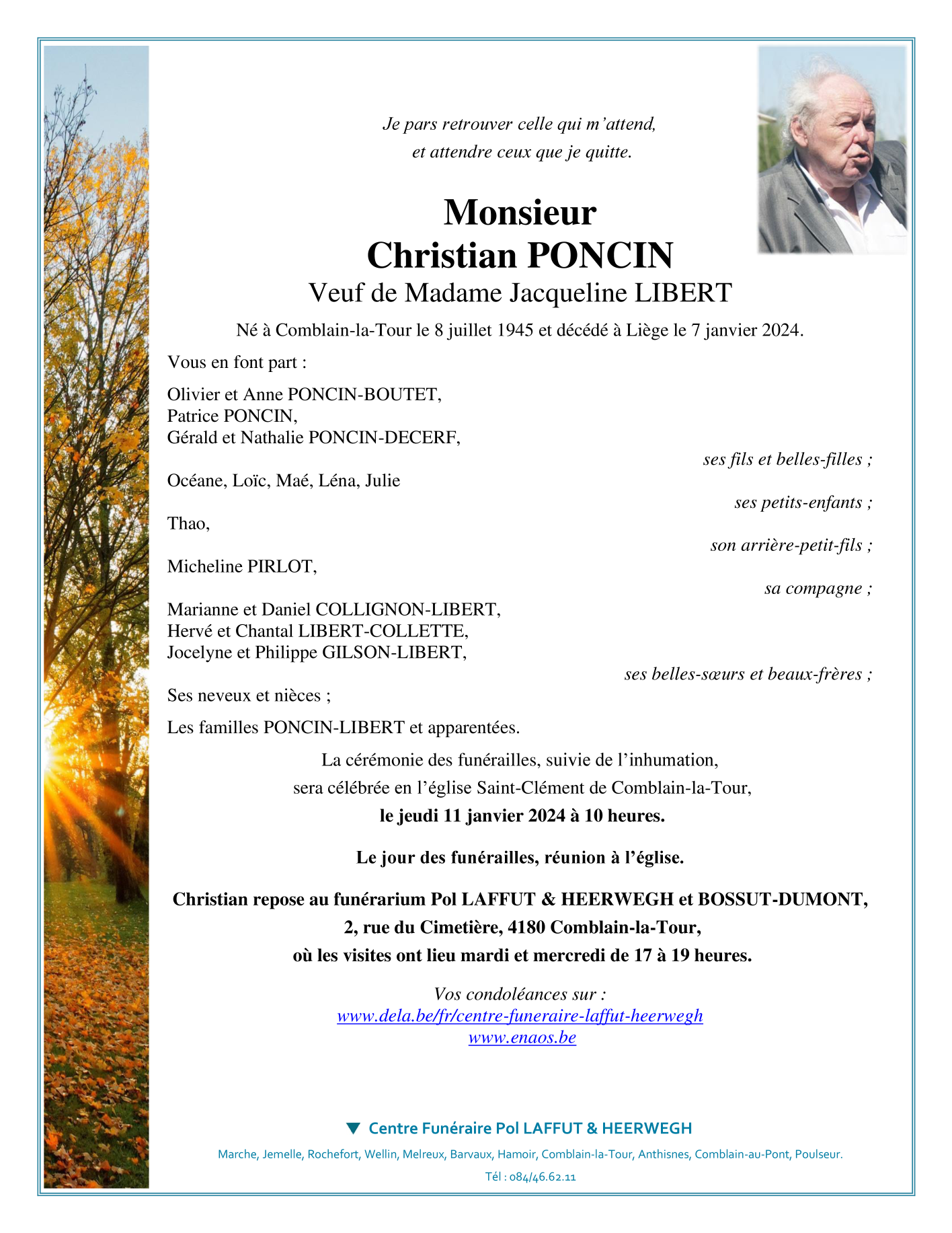 Né à Comblain-la-Tour (4180) le dimanche 8 juillet 1945