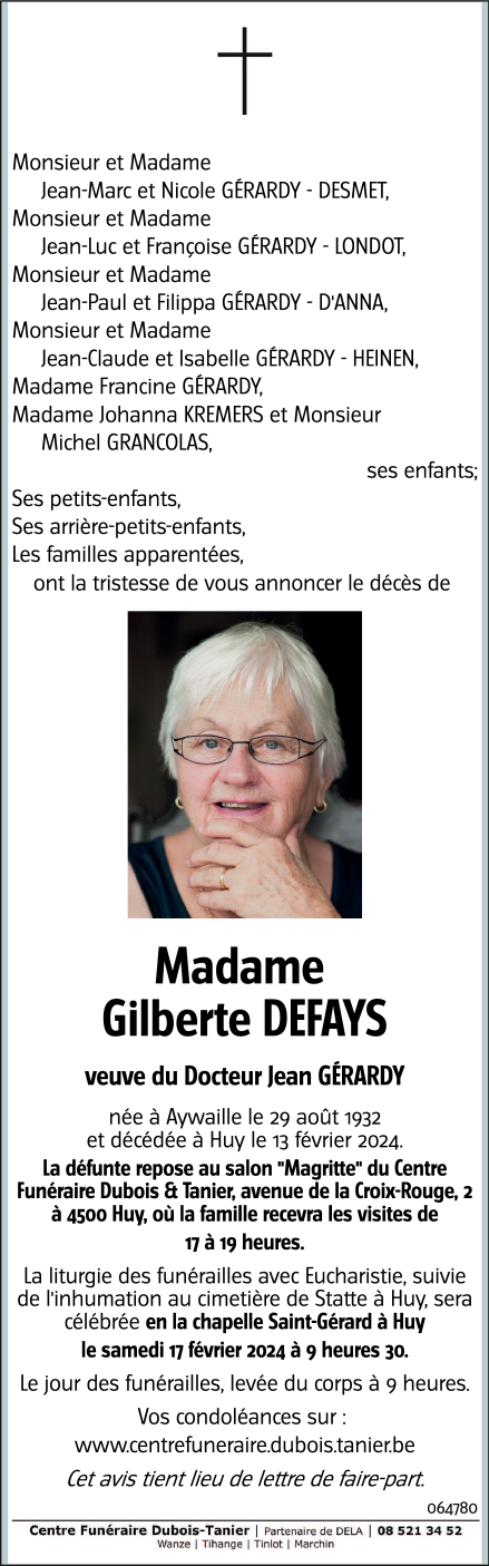 Fallecida en Huy (4500) el martes, 13 de febrero de 2024 a la edad de 91 años