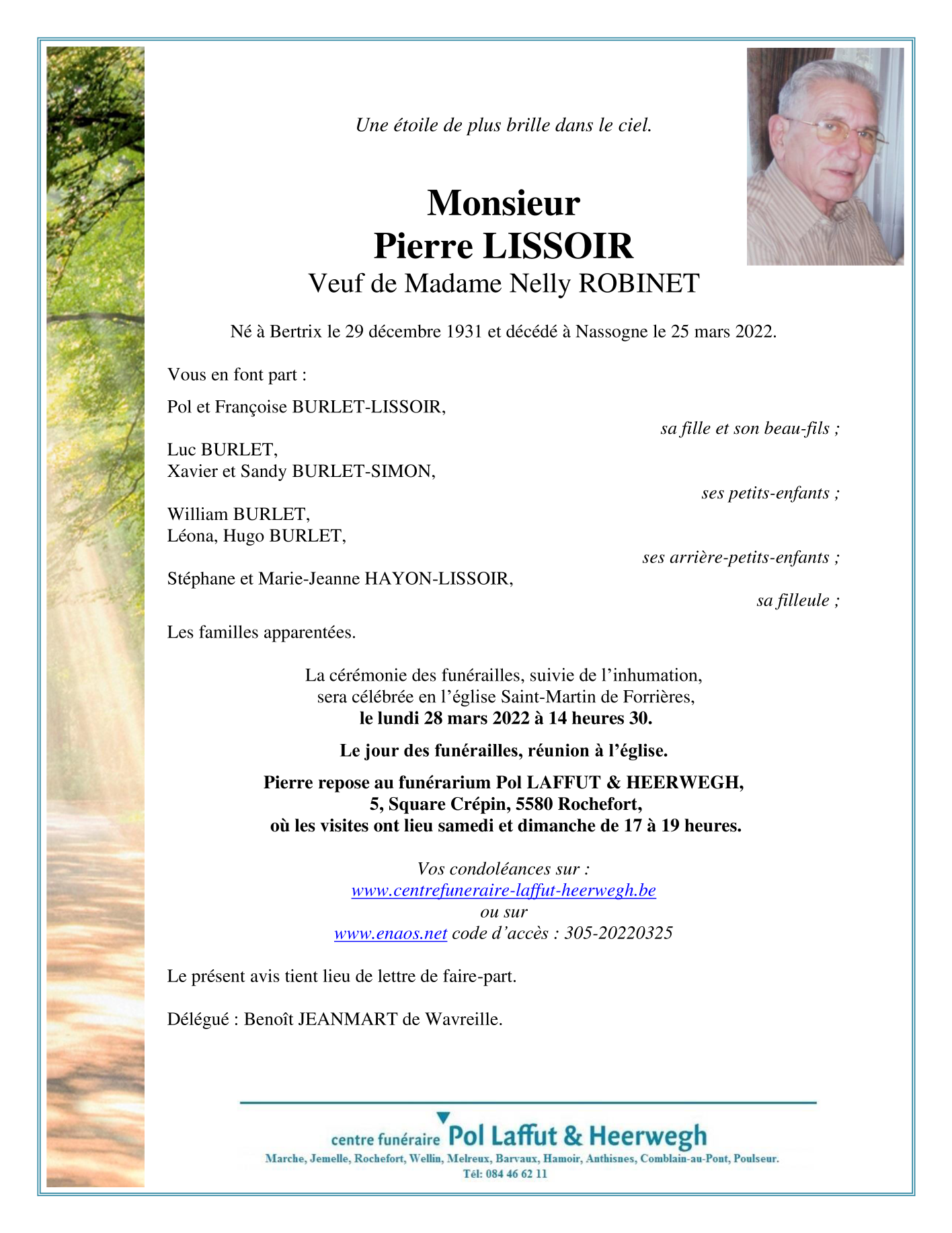 Died in Nassogne (6950) on 25 March 2022 at the age of 90 years
