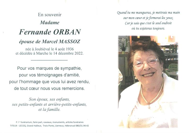 Décédée à Marche-en-Famenne (6900) le mercredi 14 décembre 2022 à l'âge de 86 ans