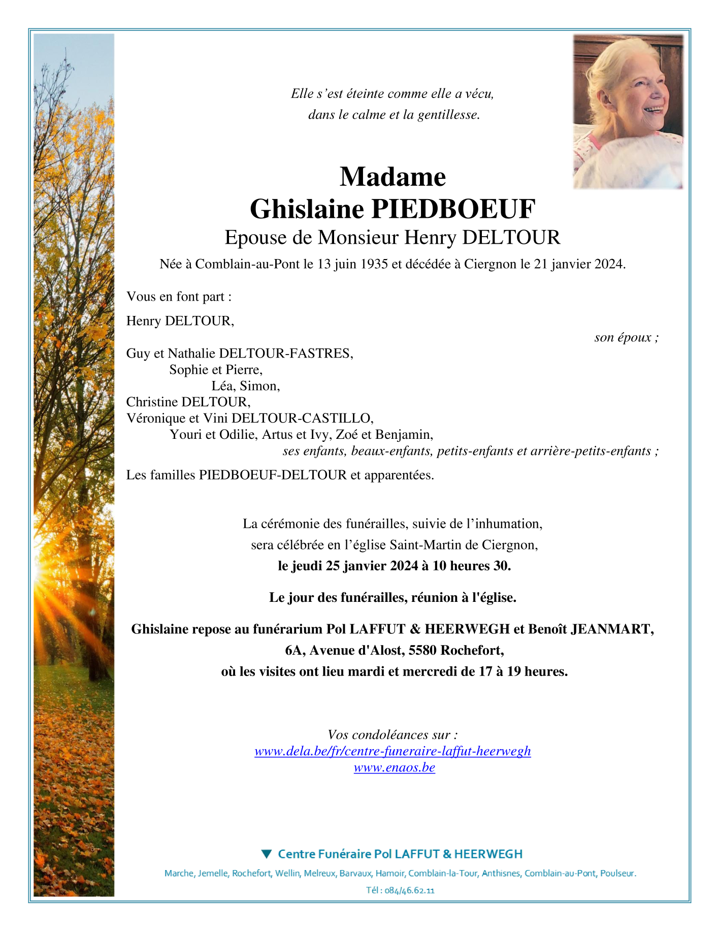 Died in Ciergnon (5560) on 21 January 2024 at the age of 88 years