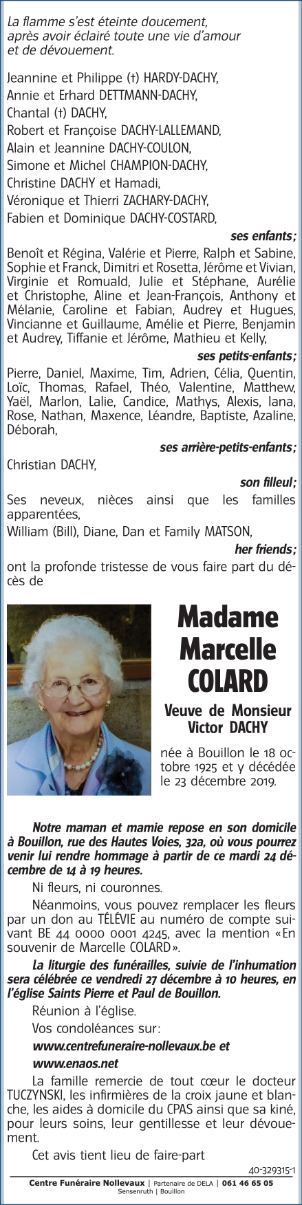 Overleden te Bouillon (6830) op maandag 23 december 2019 op 94-jarige leeftijd