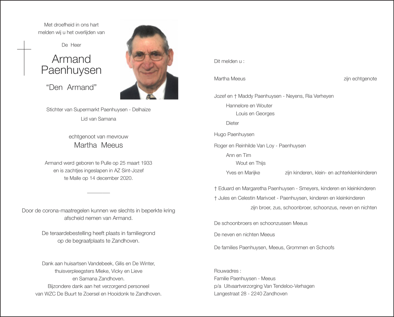 Décédé à Malle (2390) le lundi 14 décembre 2020 à l'âge de 87 ans