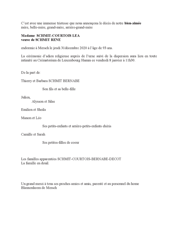 Overleden te Mersch/Colmar-Berg  (7525, Luxembourg) op donderdag 31 december 2020 op 93-jarige leeftijd