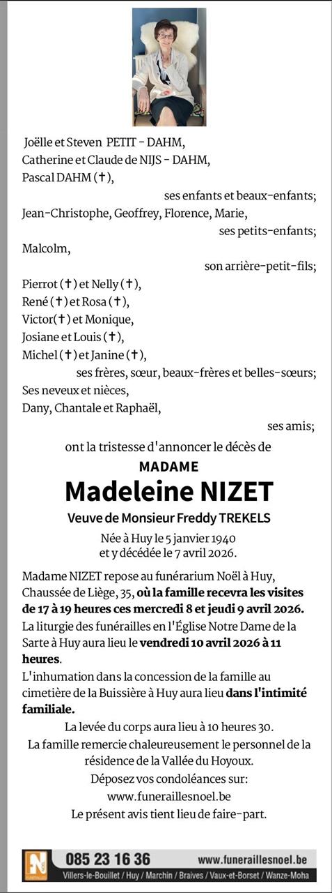 Overleden te Huy (4500) op dinsdag 7 april 2026 op 86-jarige leeftijd
