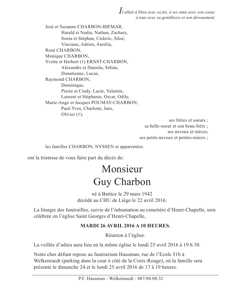 Died in Liège (4000) on 22 April 2016 at the age of 74 years