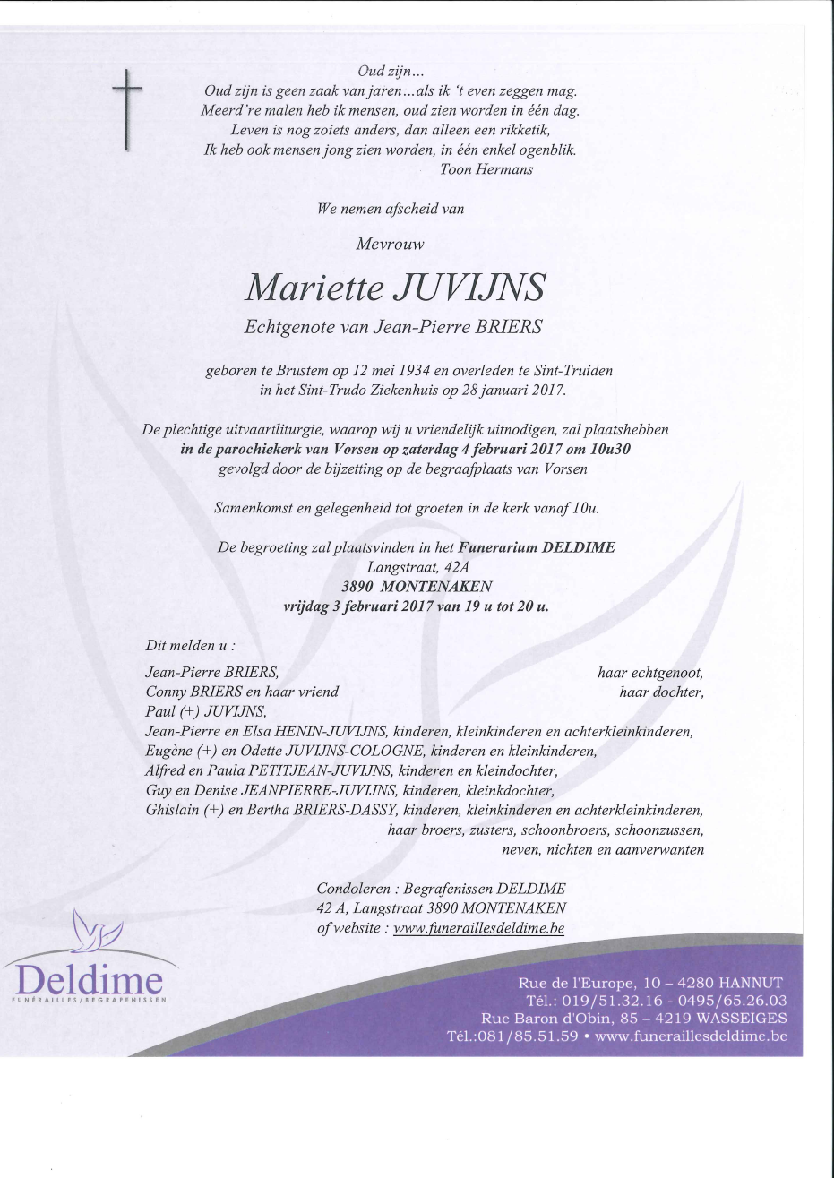 Died in Sint-Truiden (3800) on 28 January 2017 at the age of 82 years