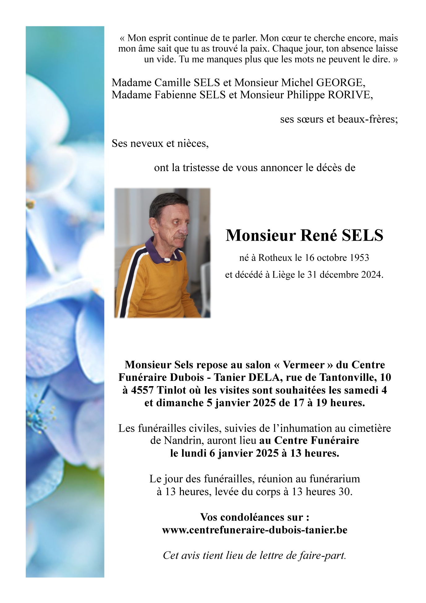 Died in Liège (4000) on 31 December 2024 at the age of 71 years