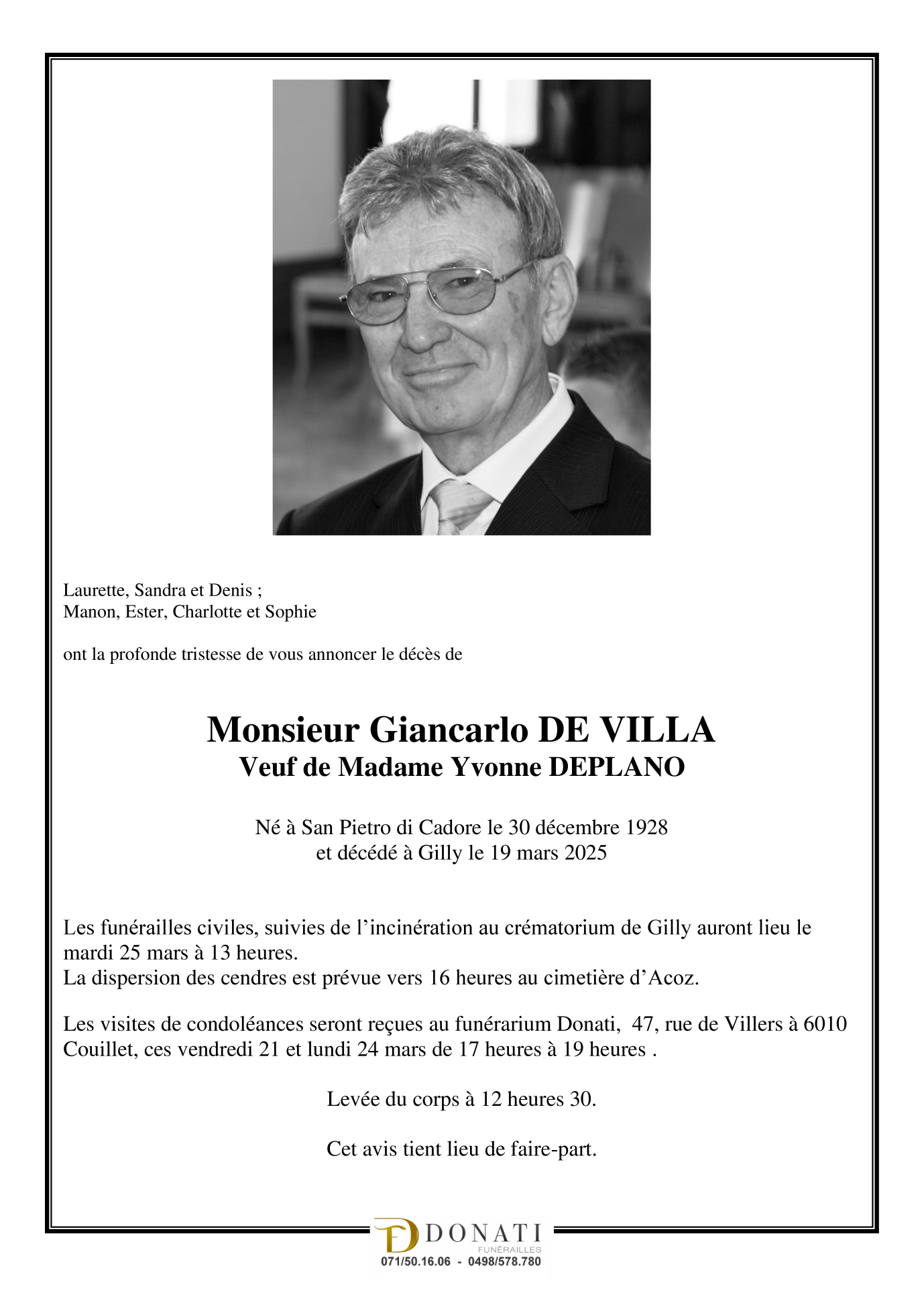 Died in Gilly (6060) on 19 March 2025 at the age of 96 years